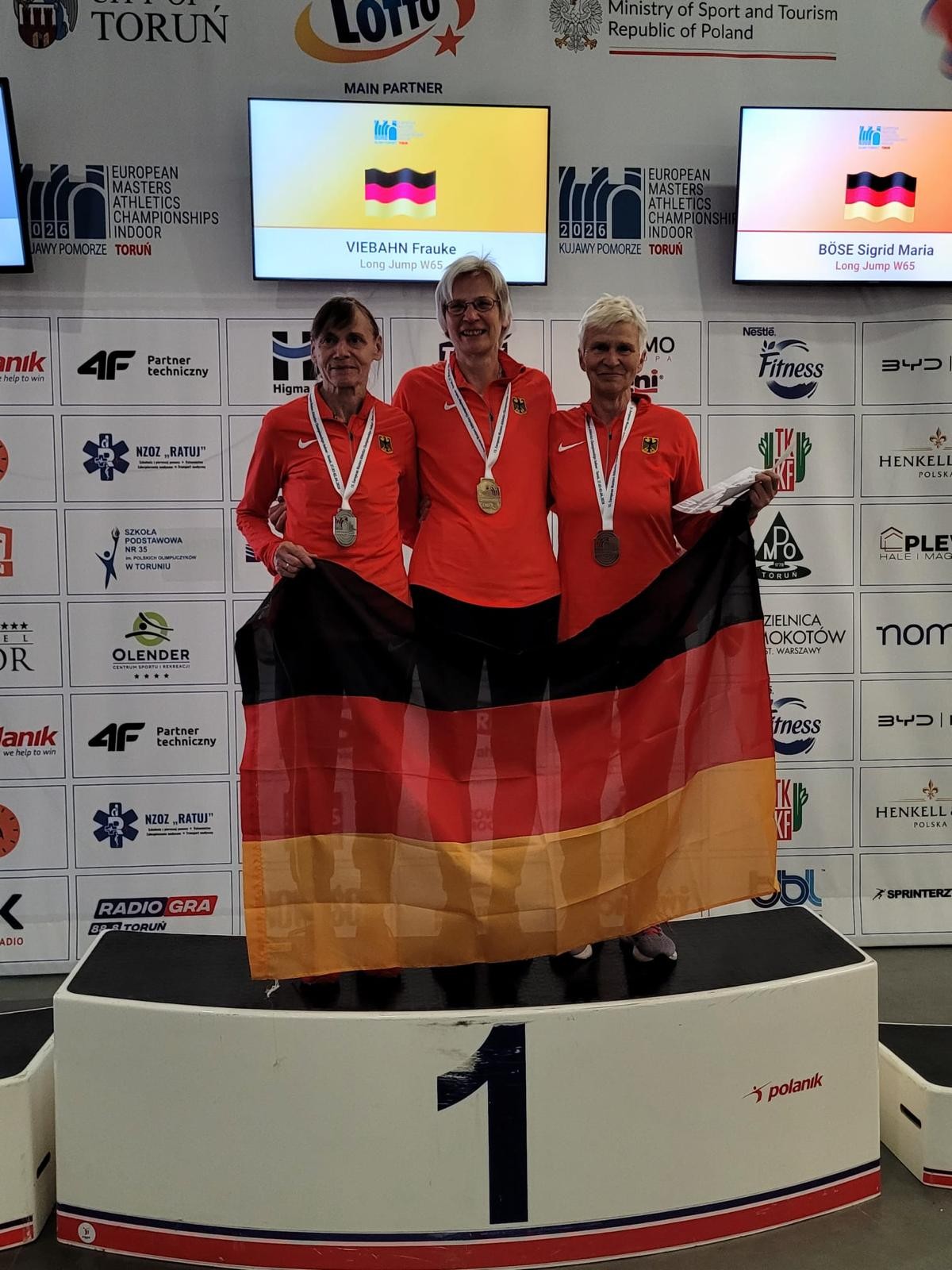 Foto: Siegerehrung im Weitsprung – Frauke gewinnt Gold vor zwei weiteren deutschen Athletinnen