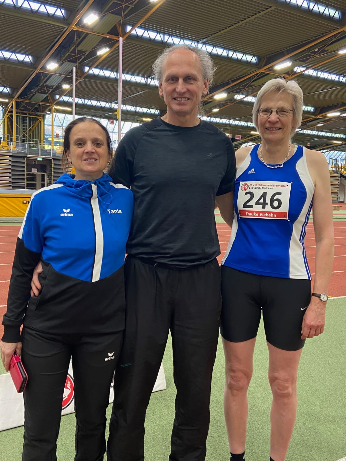 Mit zehn Athletinnen und Athleten stellte die DJK BW Annen eine der größten Gruppen bei den Westfälischen Hallenmeisterschaften der Senioren. Leider waren die Meisterschaften nicht so gut besucht, sodass einige ohne Konkurrenz an den Start gehen mussten. Aber das tat den Leistungen keinen Abbruch. Einmal mehr glänzte Frauke Viebahn (W65), die mit sehr guten Leistungen ihre drei Wettkämpfe gewann. Über 60 m kam sie in 9,35 s ins Ziel, über 200 m in tollen 32,14 s und im Hochsprung übersprang sie 1,40 m. Christine Wenzel (W60) war noch nicht in ihrer Sommerform und kam – ohne Konkurrenz – im Hochsprung auf 1,16 m und im Kugelstoßen auf 10,18 m. Dafür konnte Magdalena Krüger (W55) mit 4,07 m im Weitsprung und 9,49 m an ihre Leistungen aus dem letzten Sommer anknüpfen und gewann beide Wettkämpfe. Tania Kranz (W55) lief die 60 m in 10,10 s (Rang 5), kam hinter Magdalena im Weitsprung auf Rang 2 (3,41 m) und erreichte über 60 m Hürden (12,40 s) ihr Ziel: die Quali für die Deutschen Hallenmeisterschaften. Das gelang auch ihrem Mann Jörg Kranz (M55), der nach langer Verletzungspause nur einen Sprung im Stabhochsprung über 3,00 m erfolgreich absolvierte. Monika Gebhardt hatte sich besonders auf ihren ersten Kugelwettkampf in der W50 gefreut, da sie nun endlich mit der leichteren 3 kg Kugel stoßen durfte. Mit einer Weite von 10,42 m überraschte sie sich selbst und gewann zudem ihren Wettkampf. Auch Sandra Krall (W40) freute sich über ihre Kugelweite von 9,18 m, obwohl sie in der letzten Zeit kaum trainiert hatte. Anne Rodewig (W40) lief über 60 m 9,57 s und sprang 3,81 m weit – in Ordnung, aber im letzten Sommer lief es besser. Mit einer Leistenzerrung trat Stefan Müller (M50) an. Nach zwei Versuchen im Weitsprung musste er abbrechen, über 60 m lief er mit Schmerzen 9,47 s, aber im Kugelstoßen gelang ihm mit 10,34 m eine neue